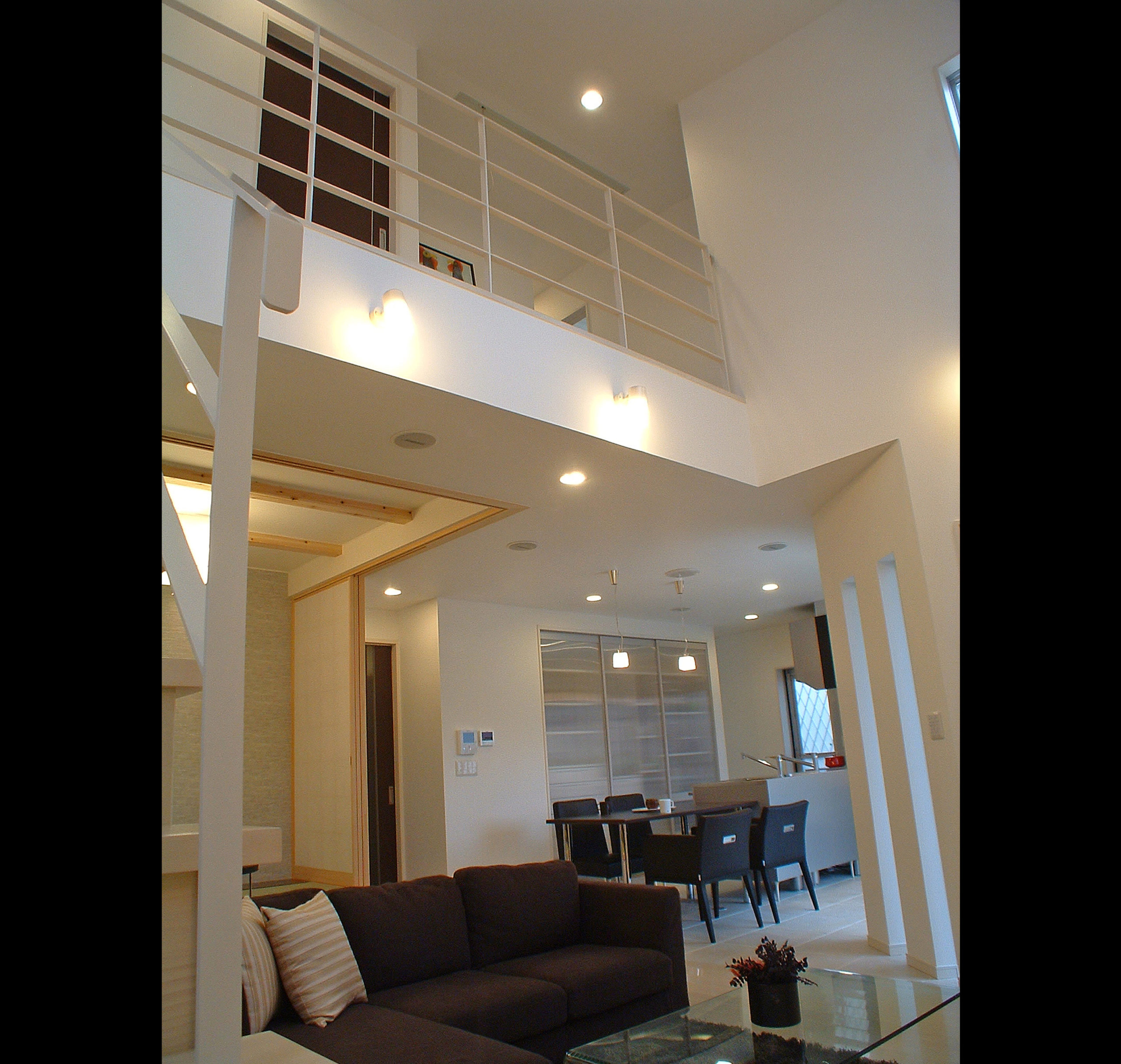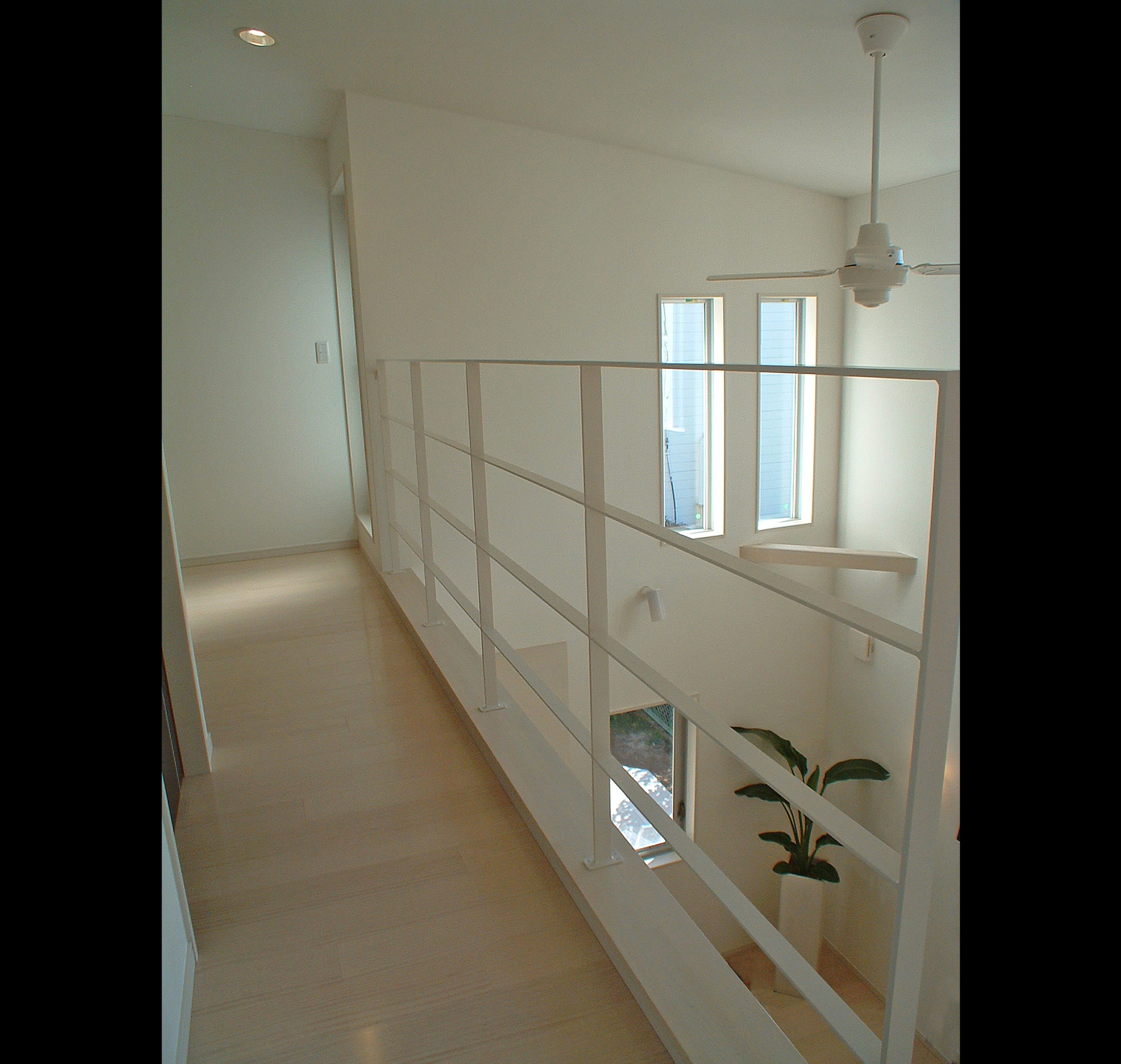 南側に建物が建つ可能性があるので、吹抜の東側にも高窓を設け南側の高窓と高さを変え光を分散。