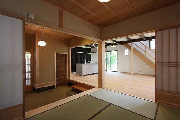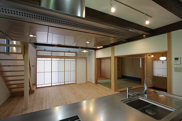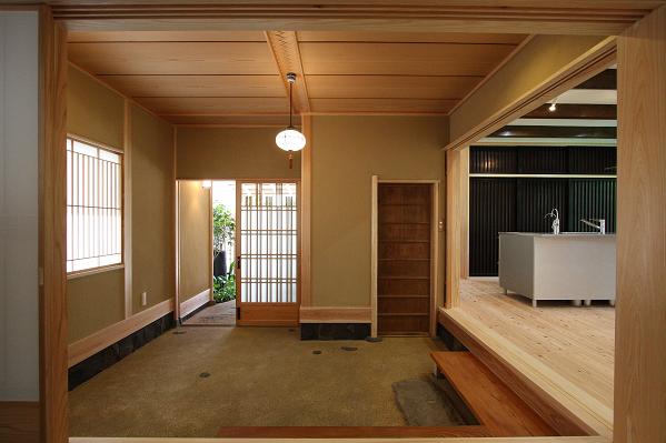 土間は和室とDK(ダイニングキッチン)に面し、土間から和室へ、また土間からDKへ直接上がることができる。