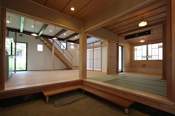 開け放して使用すれば、32帖の大空間となり、6帖の土間が一見無駄なようであるが、この 「間」 があることでDKや和室に広がりを与え、開放感を味わうことができる。