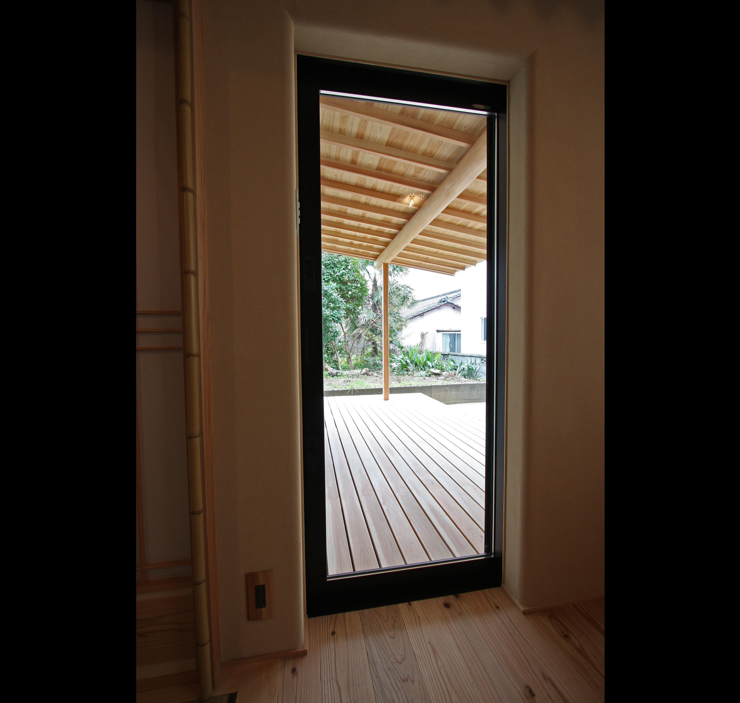 下屋は一間半出ており、横殴りの雨が降らない限り雨の日でも掃き出し窓を開けて風を通すこともできる。