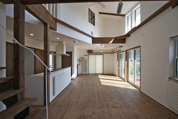 提案 家中を回遊できる LDKを眺望の良い方向に向ける 左官仕上げの 内外壁 外壁に板 キャットロード 放射暖房システム (施主希望) 玄関和室と続けた 動線