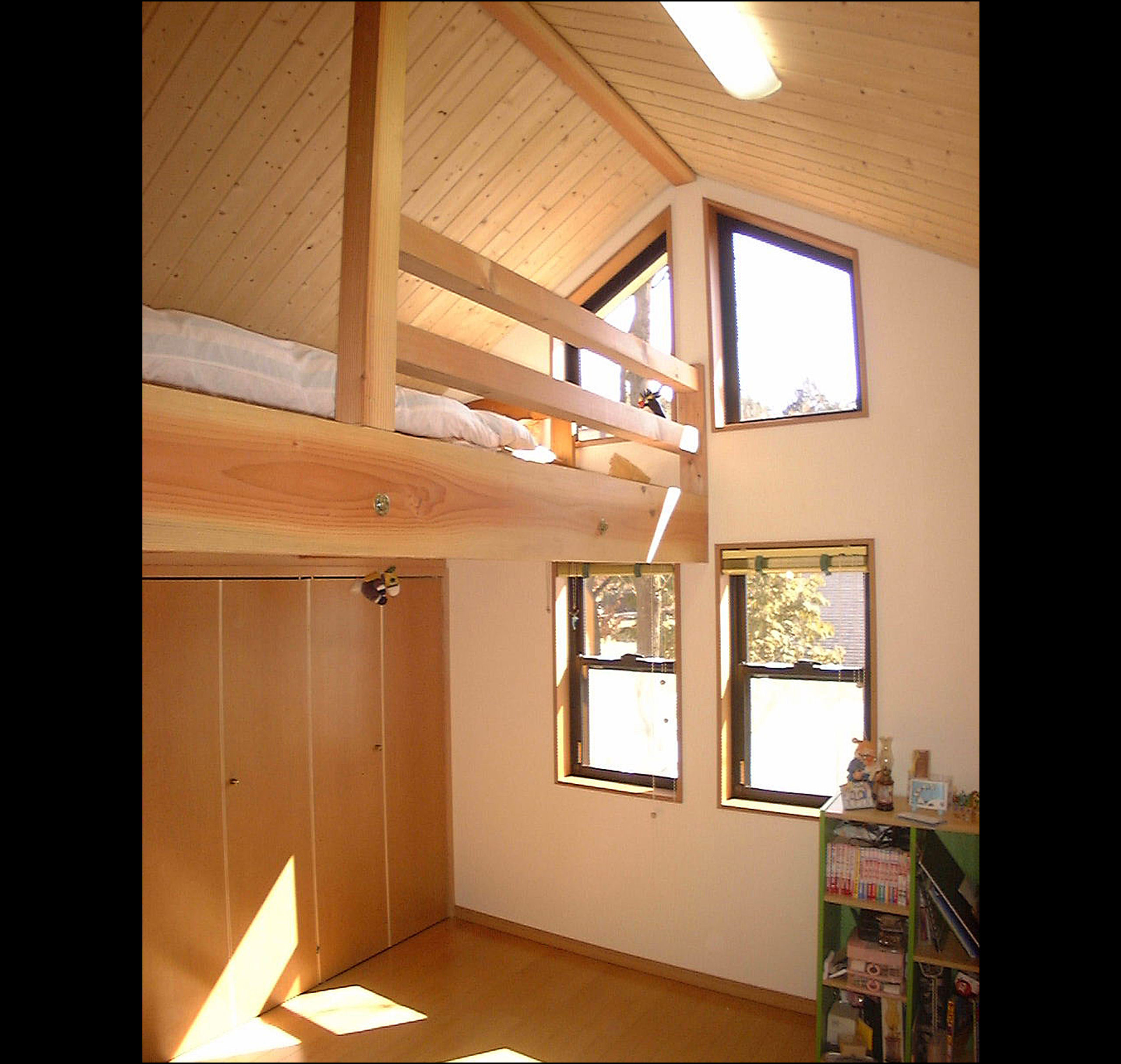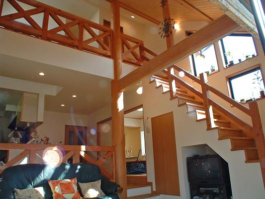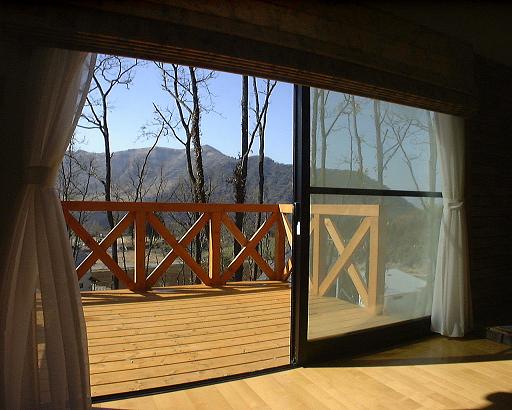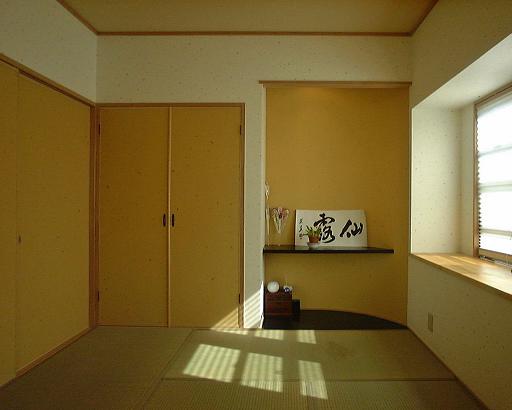 敷地は南北に細長く、南側の眺望が良好で阿蘇の原生林を望む地帯に位置しており、リビング 和室 浴室を眺望の良い南側に配置した。 |