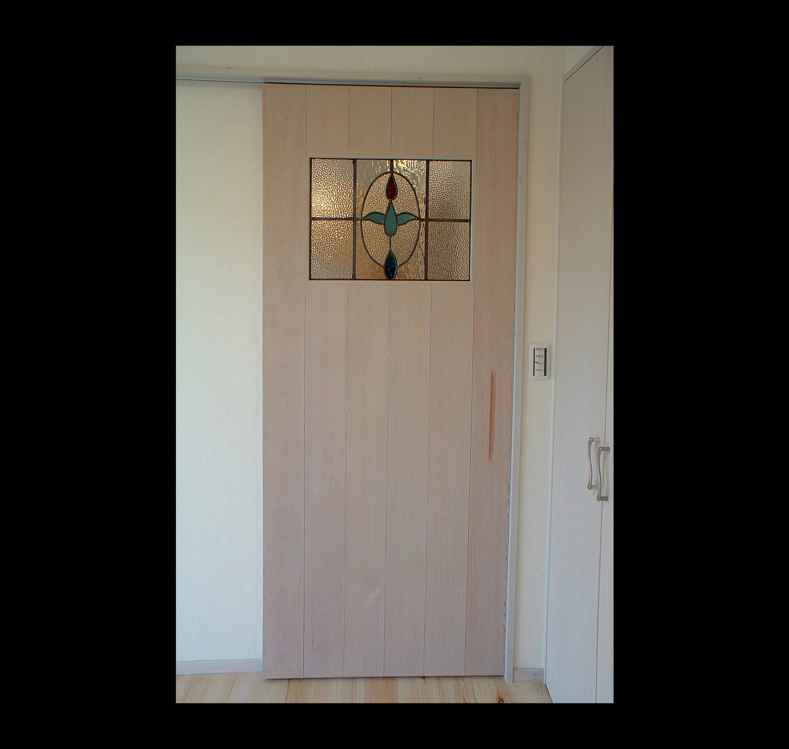提案 1階は介護用車椅子対応 高齢者の生活動線を最短で 洋風のデザイン ステンドガラスをドアや壁に取り付ける リビング上部を吹抜にして中2階に多目的ホール